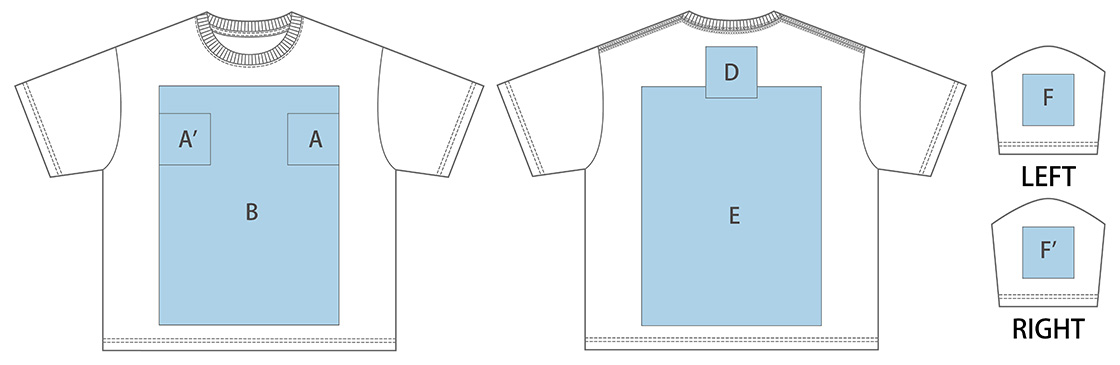 ※プリント可能なエリアや面積は手法によっても異なります。表示以外のエリアへのプリントについてはお問合せください。