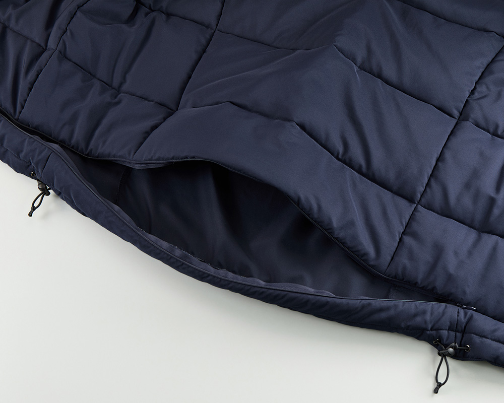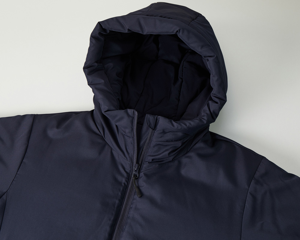 - ユナイテッドアスレ746301は高密度生地を使用した、軽量さと上品な光沢感が魅力のフードタイプの中綿パーカです