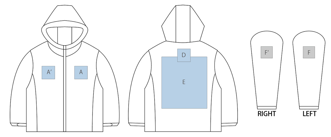 ※プリント可能なエリアや面積は手法によっても異なります。表示以外のエリアへのプリントについてはお問合せください。