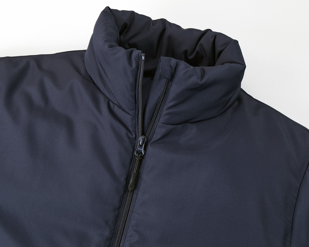 - ユナイテッドアスレ746401は高密度生地を使用した、軽量さと上品な光沢感が魅力のスタンドカラーの中綿ジャケットです。