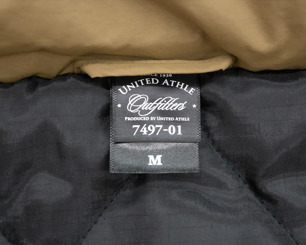 - 裏地にはミリタリーテイストな瓢箪キルトを採用し、さらには滑りのいいポリエステル生地で袖通しがよく、着心地もばっちり確保しています。