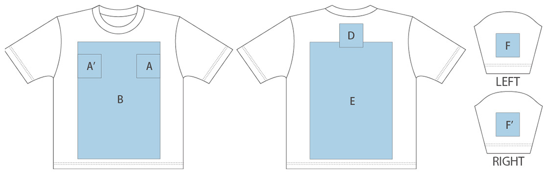 ※プリント可能なエリアや面積は手法によっても異なります。表示以外のエリアへのプリントについてはお問合せください。