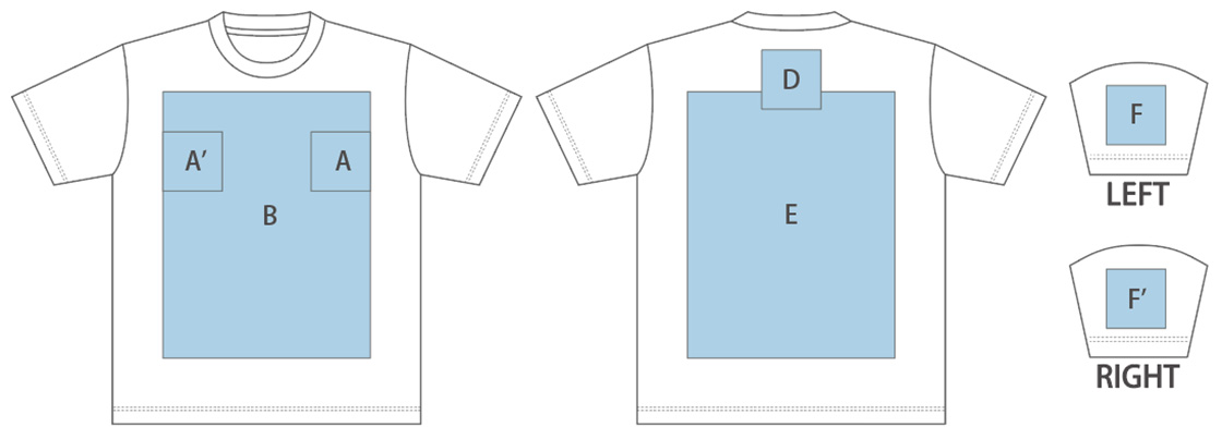 ※プリント可能なエリアや面積は手法によっても異なります。表示以外のエリアへのプリントについてはお問合せください。