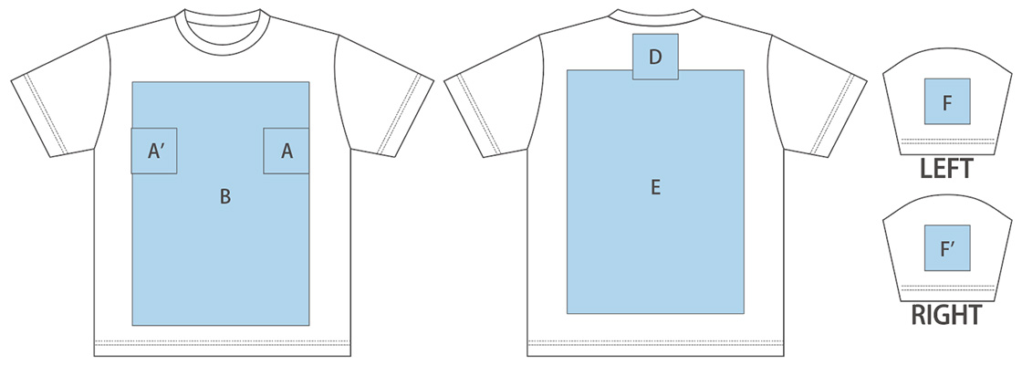 ※プリント可能なエリアや面積は手法によっても異なります。表示以外のエリアへのプリントについてはお問合せください。