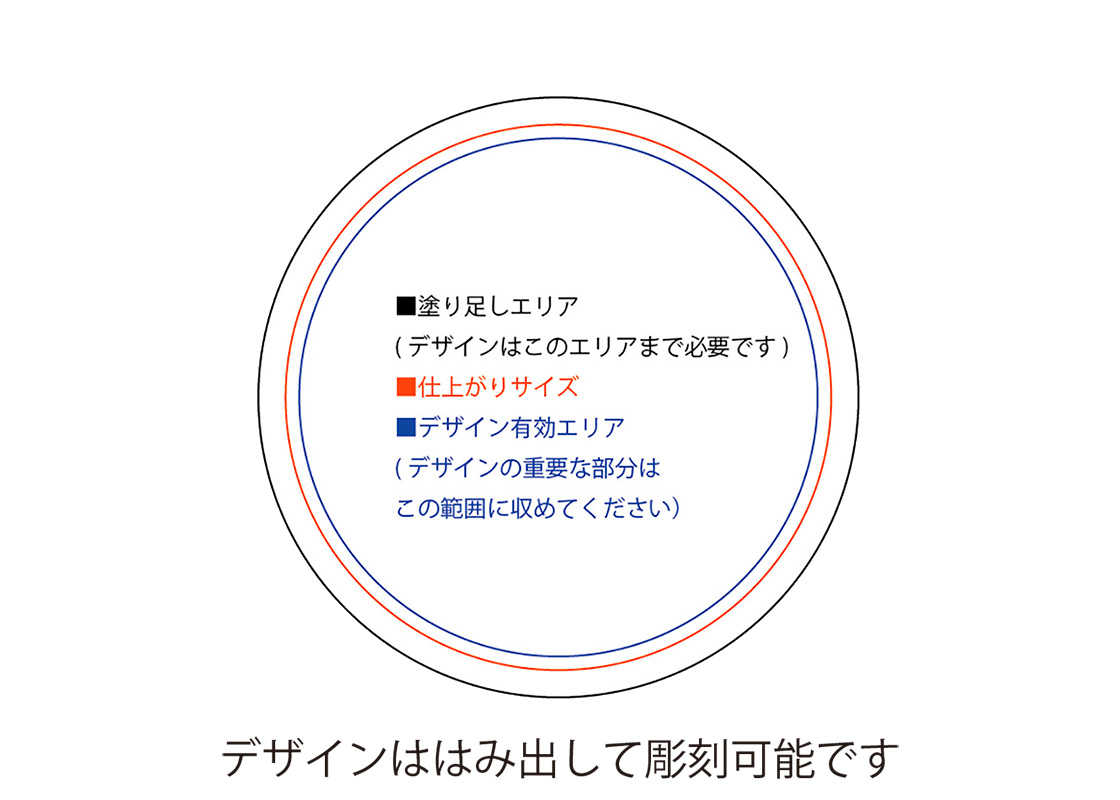- はみだして全体に加工が可能ですがコースターのエッジ部分は位置合わせの誤差でずれることがありますので重要なモチーフはデザイン有効エリアに収めてください。