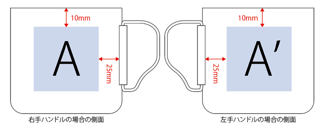 ※プリント可能なエリアや面積は手法によっても異なります。表示以外のエリアへのプリントについてはお問合せください。