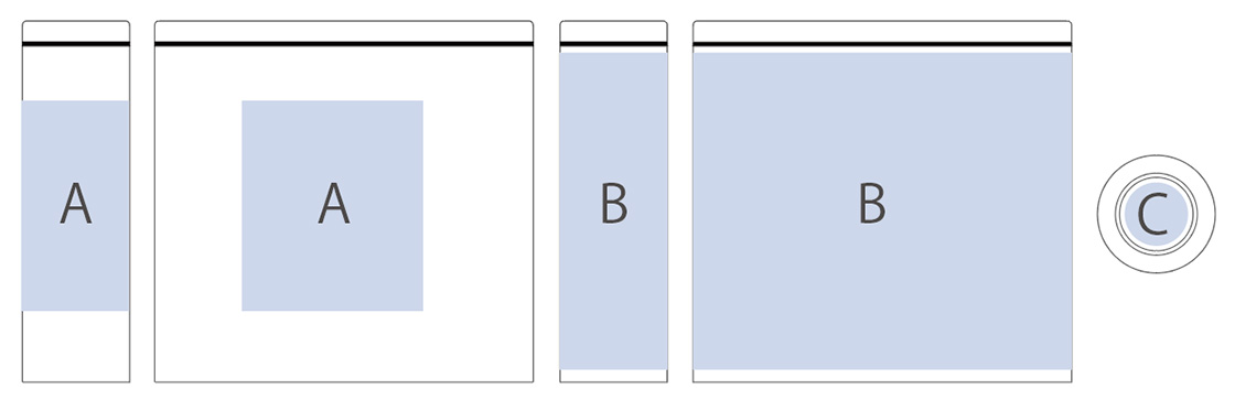 | エリア加工別適正 | A(86x100mm) | B(180x150mm) | C(30x30mm) |